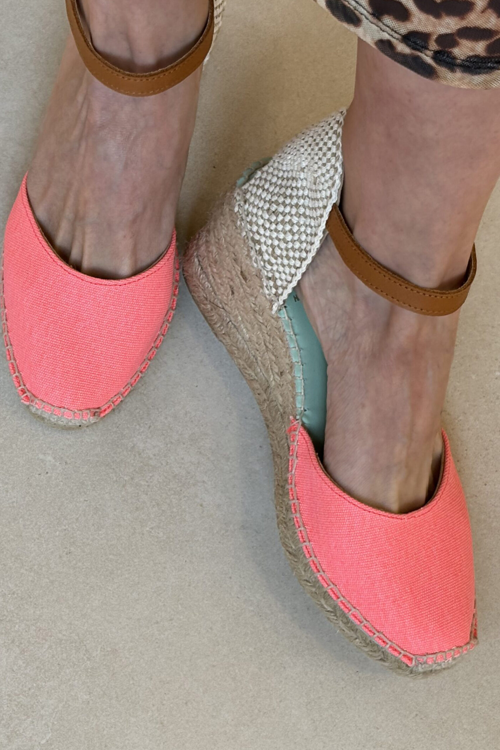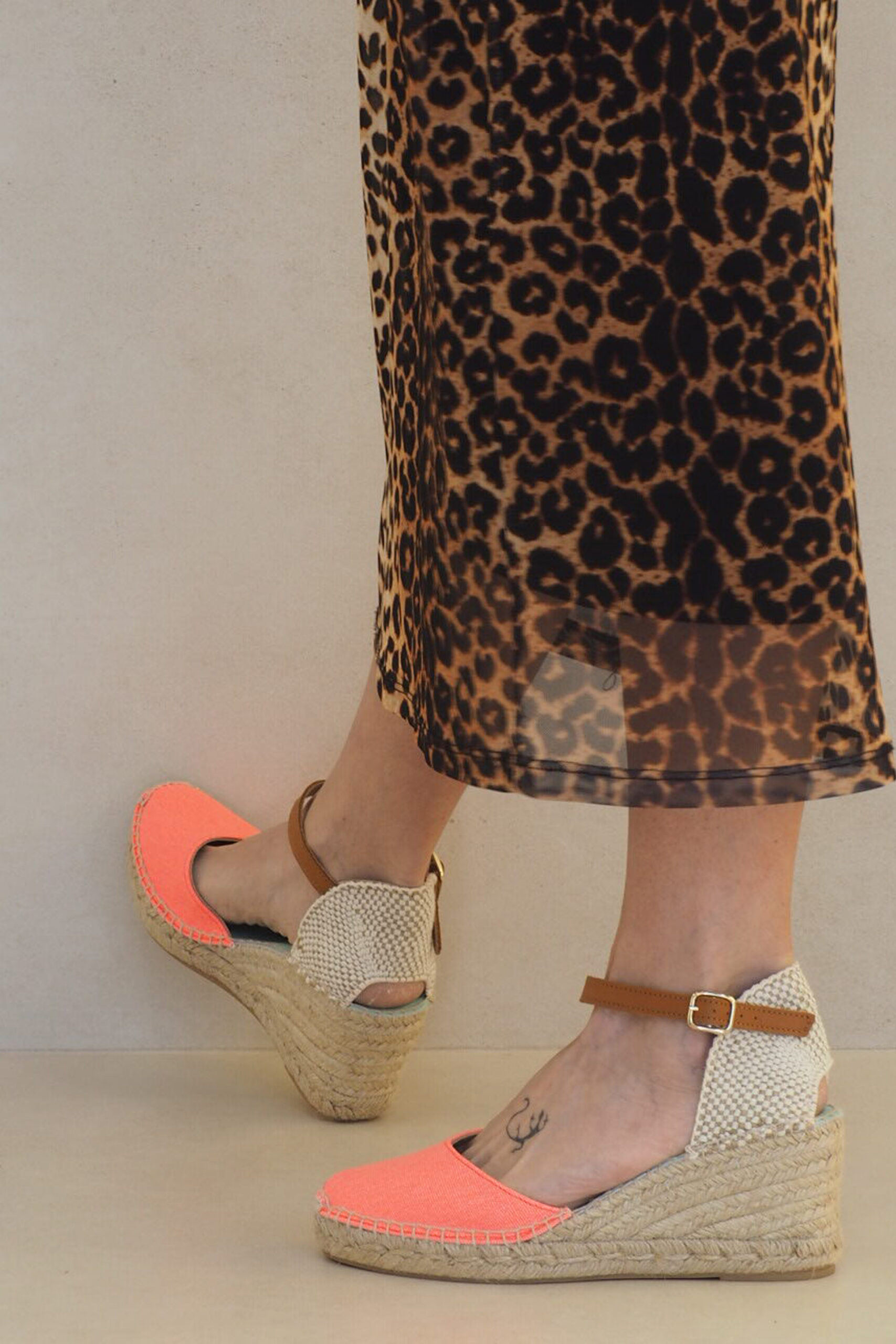Alpargata estilo valenciano y con pulsera con una pala en loneta . Mira que ideal queda combinar los colores fosforitos con el yute natural. Un calce maravilloso. Pruébatelas!