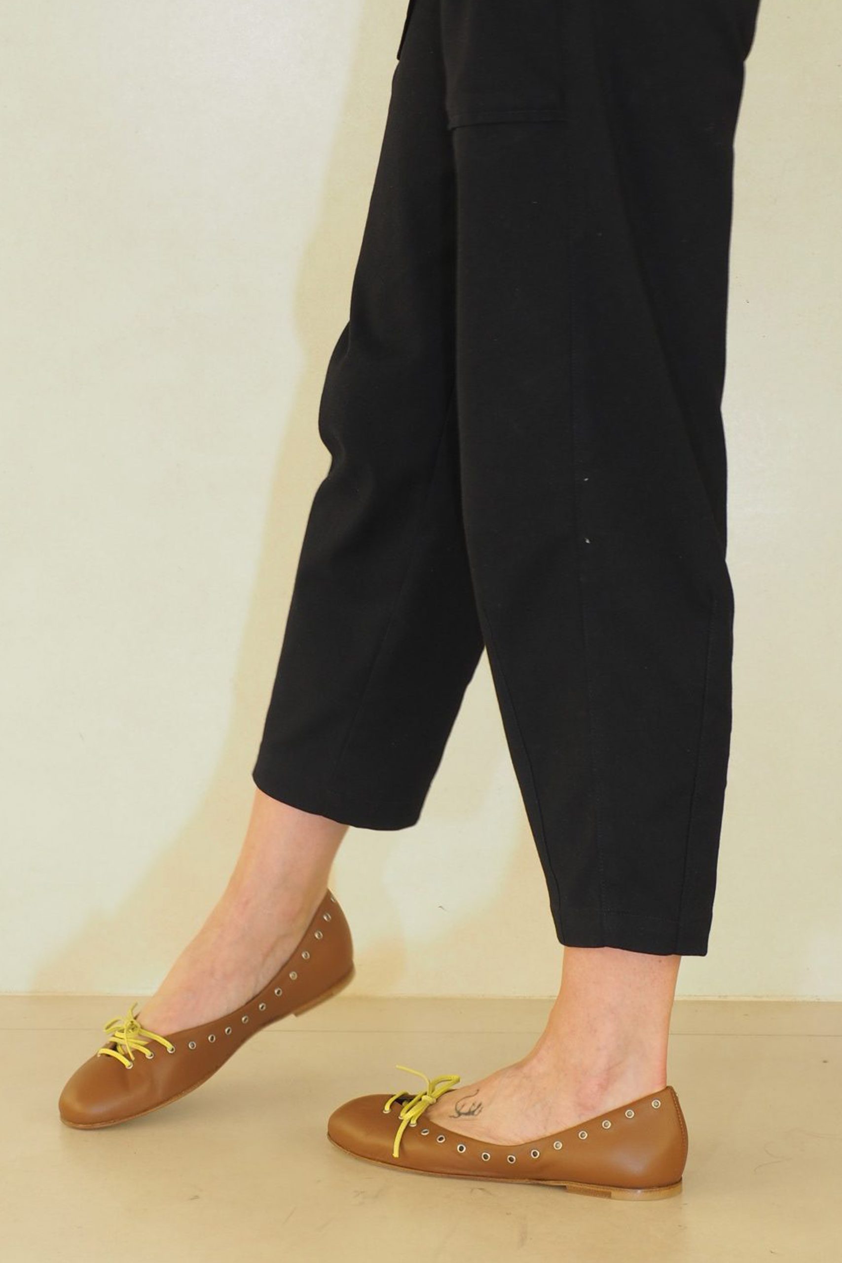Bonita bailarina con punta redondeada y exquisito escote con cruce de cordon. Ideal el contraste azul cuero. Fresca, cómoda cómoda y con acabados premium para que los pies más especiales no sufran.