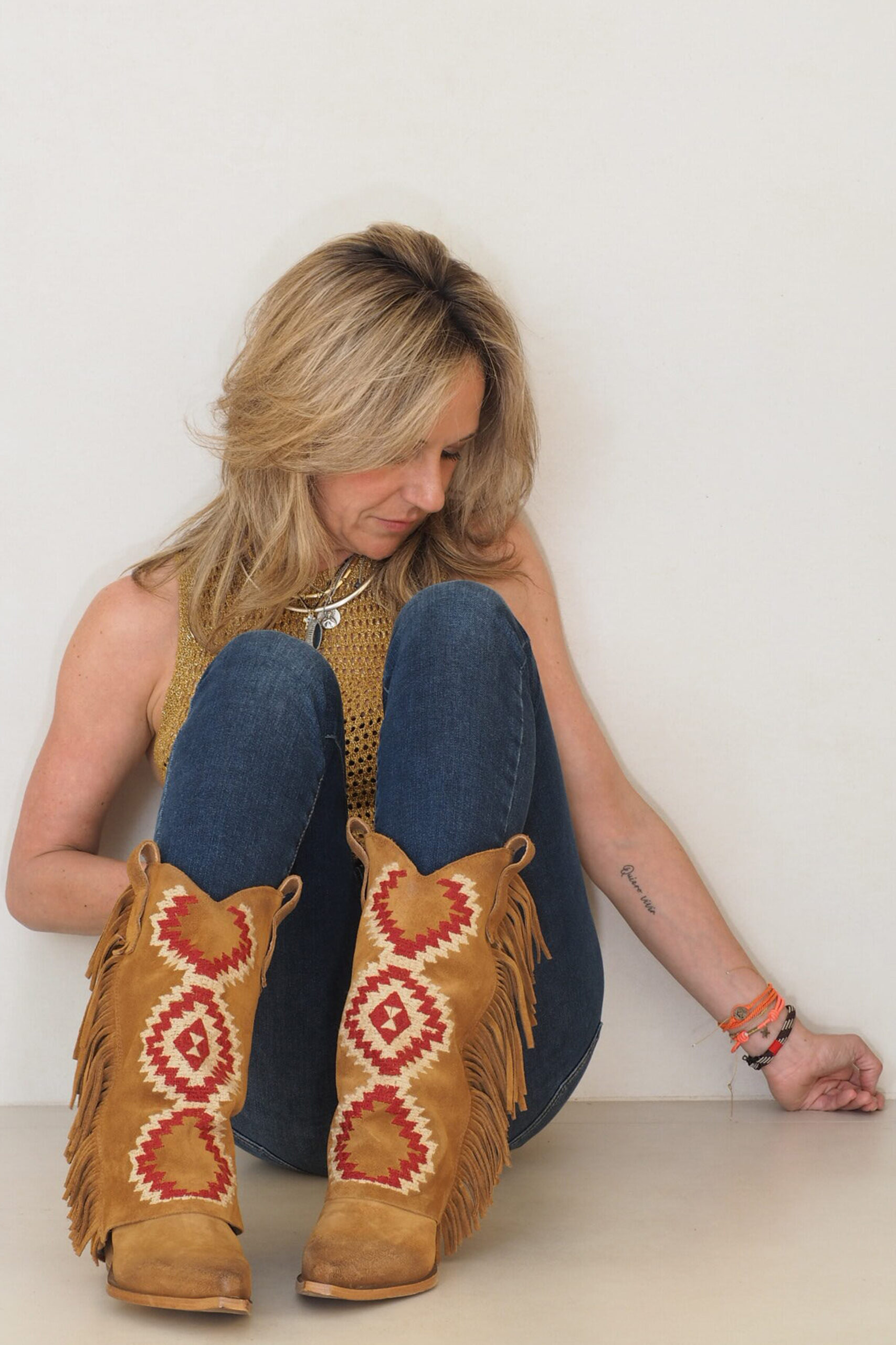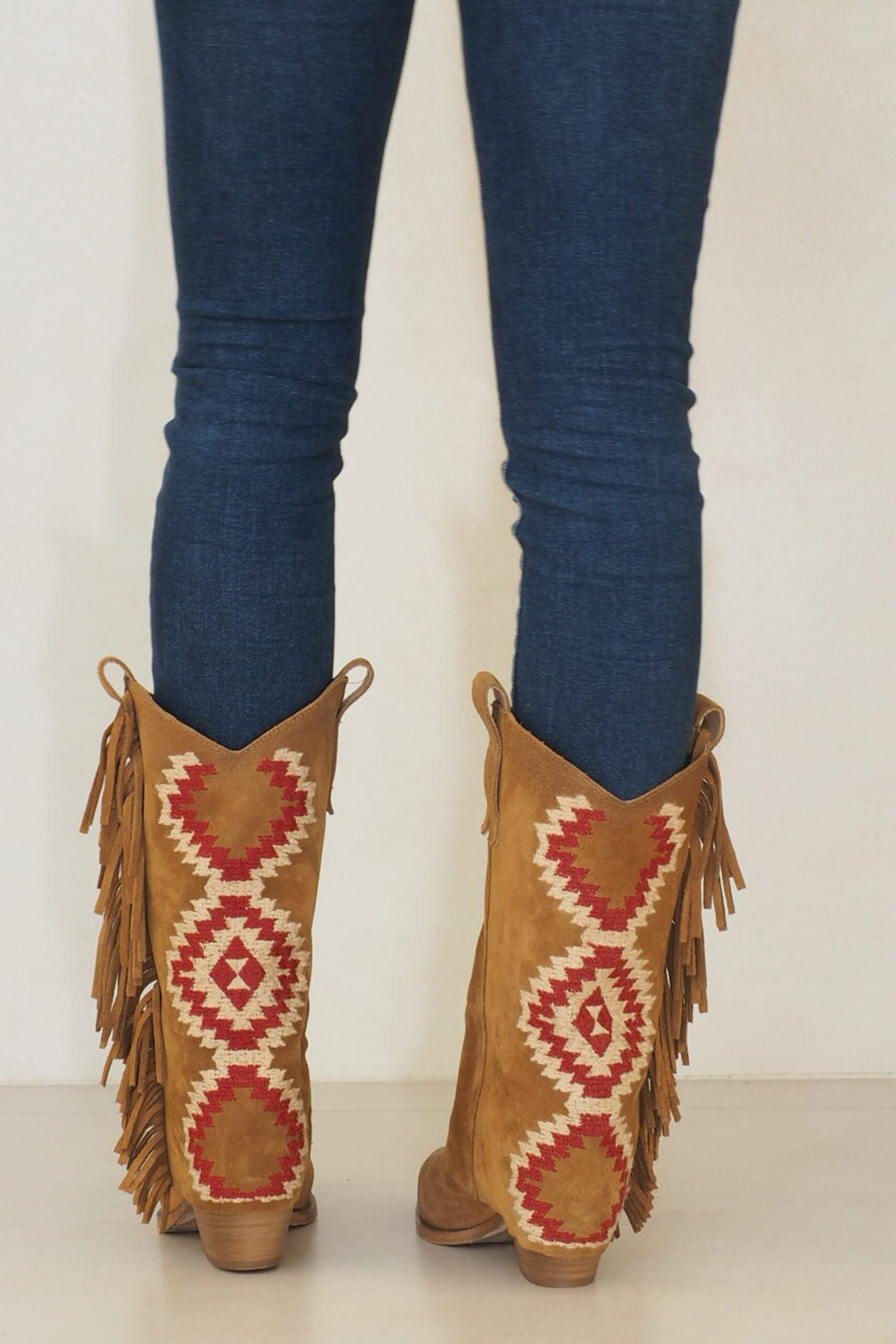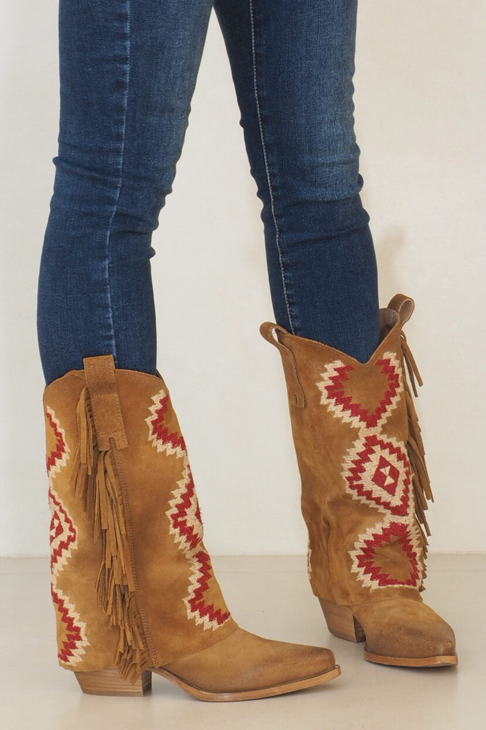 Aquí tienes el capricho de las más amantes de botas y camperas. Estilo campero con tacón cubano y doble vuelta de piel en la caña la cual esta forrada en kilim étnico ideal. Una bota de serraje cuero con un rollo súper boho chic que vas a llevar en verano con mini vestidos y shorts y en otoño invierno con tus vaqueros preferidos. Ojo, porque hay unidades limitadas y es un producto italiano súper exclusivo.