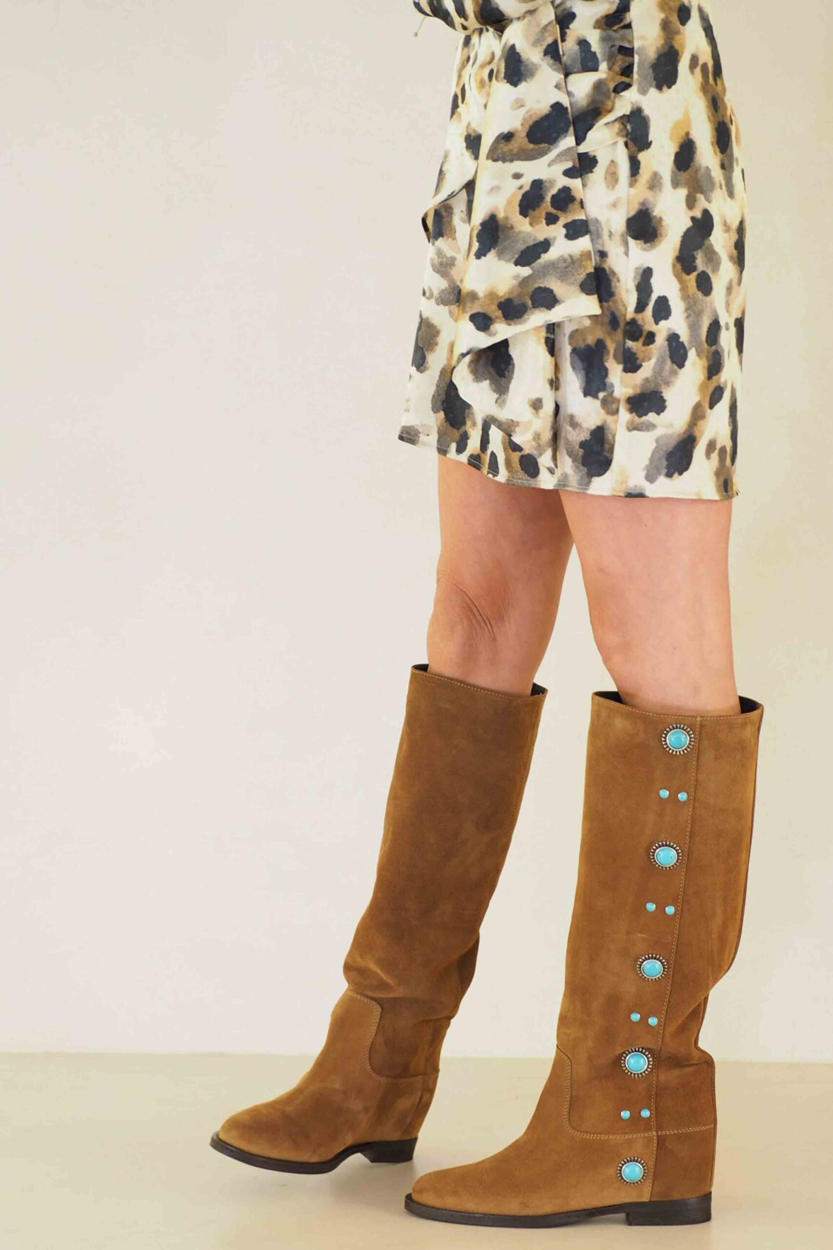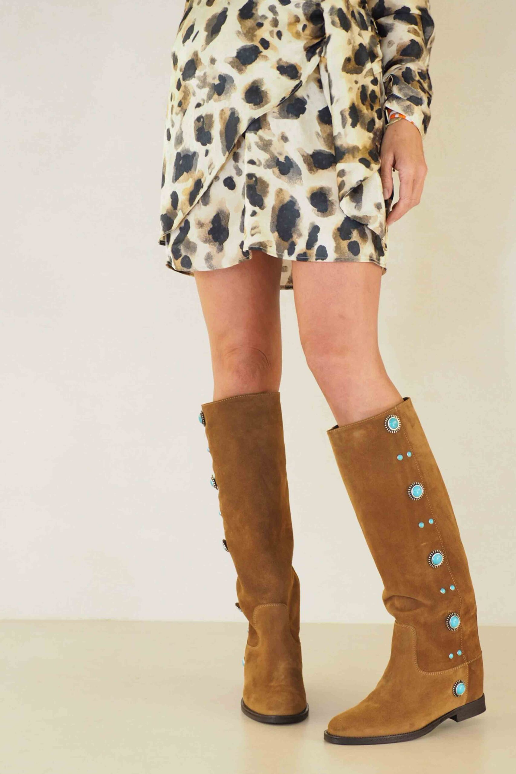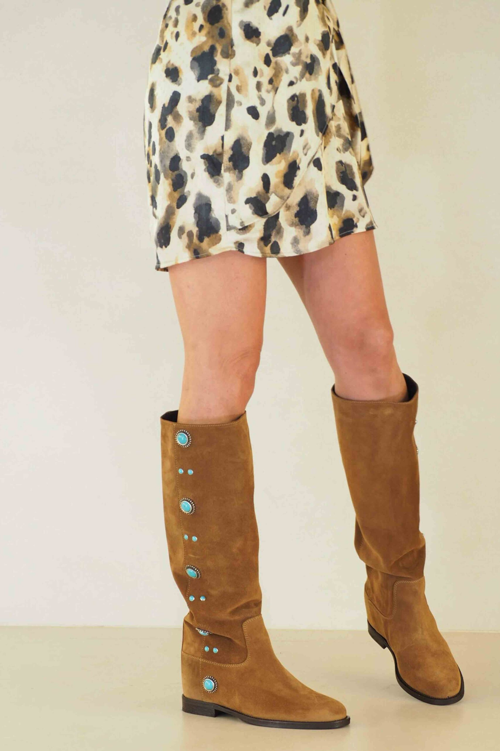 Maravillosas botas italianas de piel con detalle turquesas por todo el lateral de la pernera. Son increíbles!. Lo que no sabes de estas botas ademas es que tienen una calza interna de 6 cm con la que ganas altura sin sensación de ello. Ojo, porque son muy top y tienen muchas amigas!