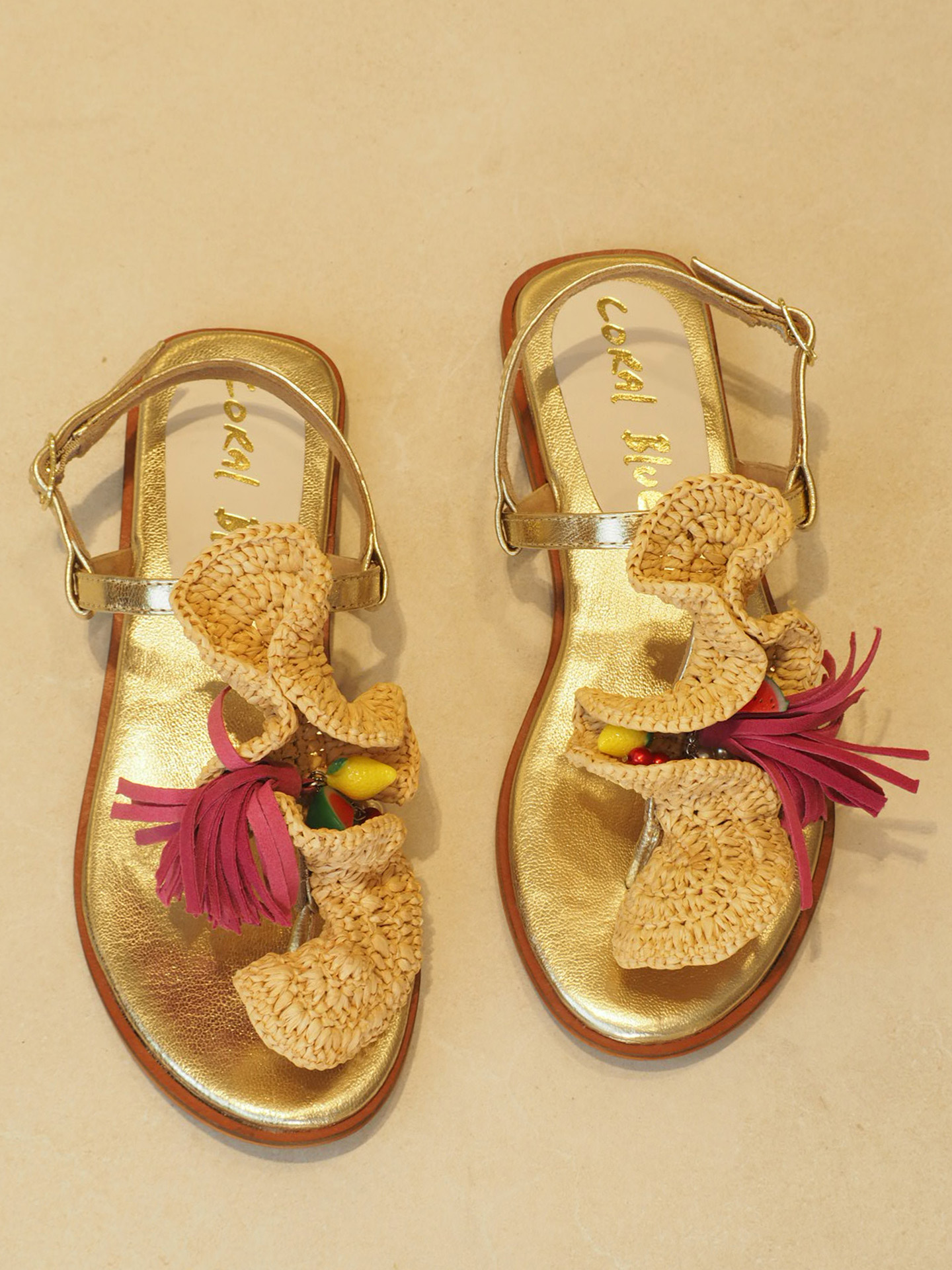 Las sandalias más coloridas y divertidas del verano las tienes aquí. El modelo Barbados  es una sandalia de dedo con bonito detalle crochet al tono y con detalles de flecos  fucsia y detalles de limón y sandia colgando. Ideal.  La  vas a llevar super a gusto. Nos  enamoró por su vivos colores caribeños .  Muy muy cómoda y practica para este verano.