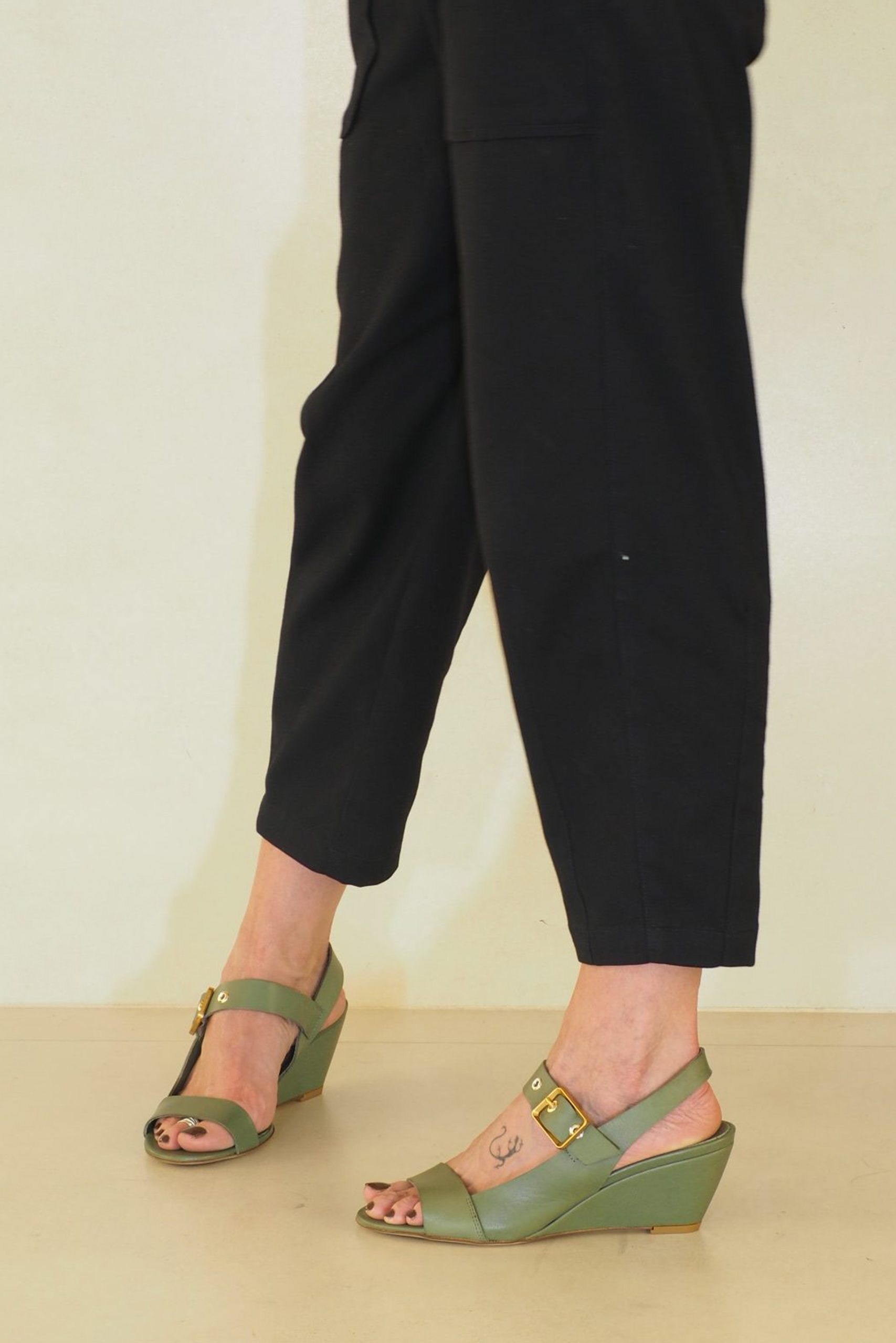 Mira que sandalia tan elegante y femenina tienes delante. Con una maravillosa piel italiana color oliva y un corte ideal que recoge el exterior de tu pie esta cuña marca tendencia este verano. Llévala como más te guste porque es comodín seguro.