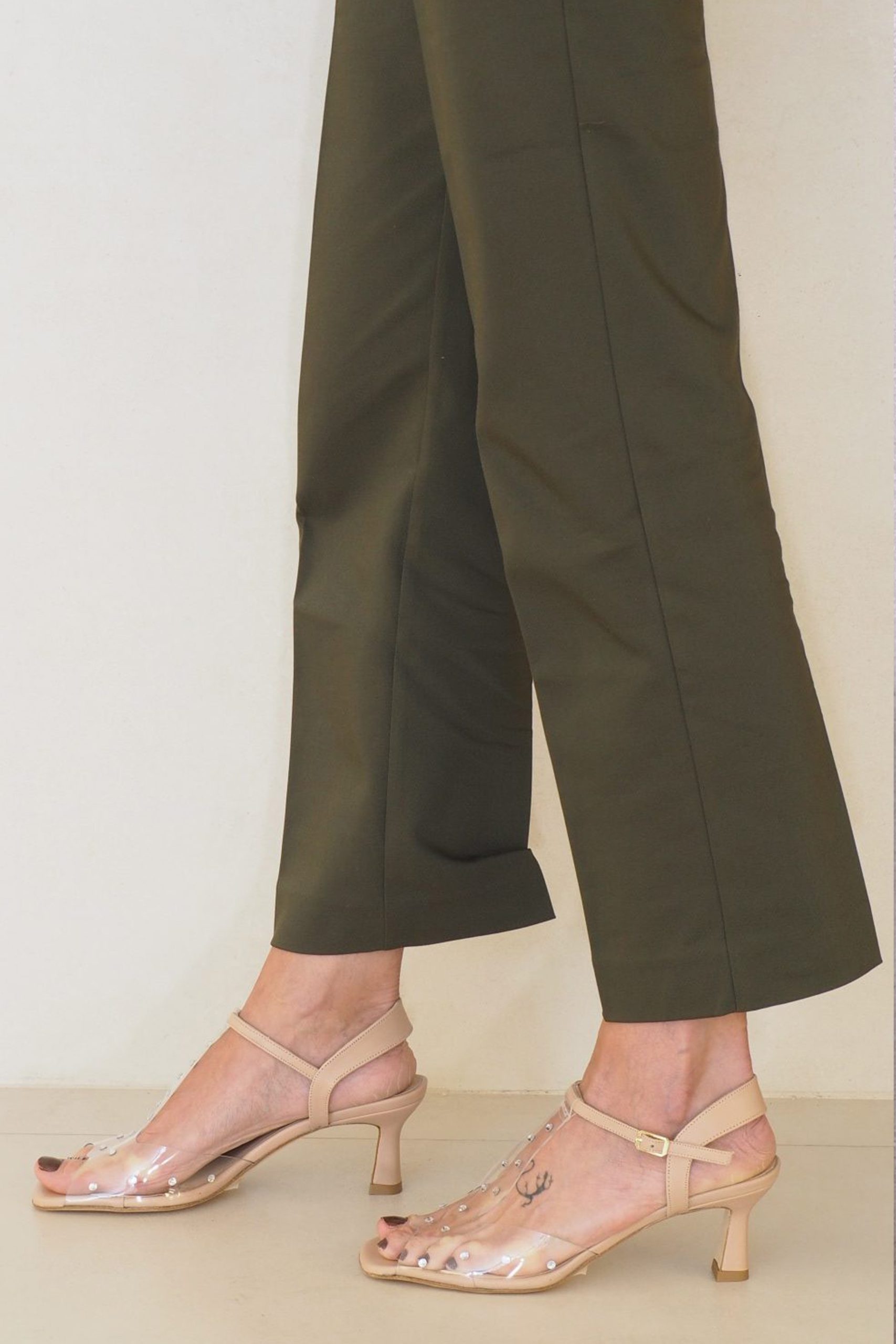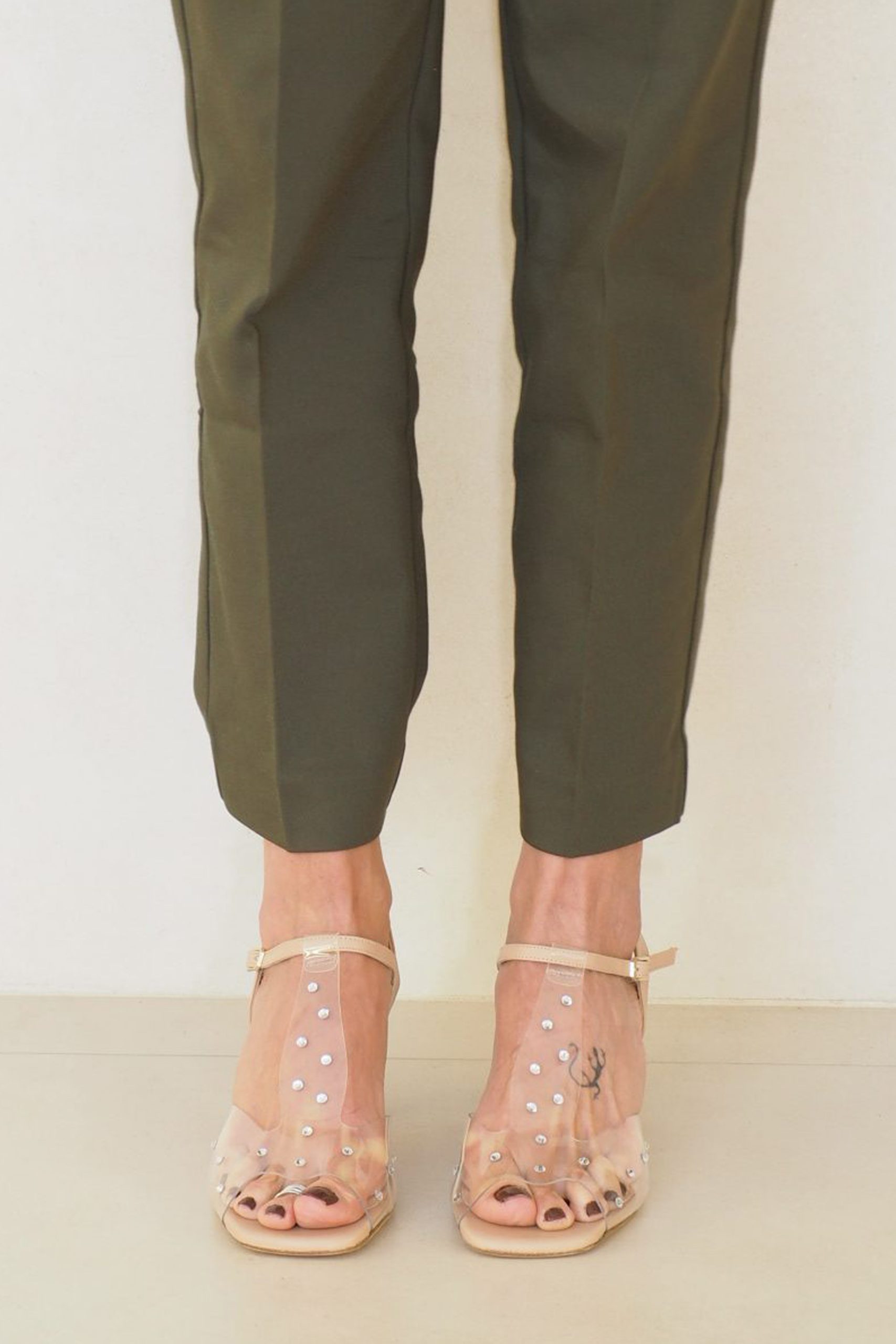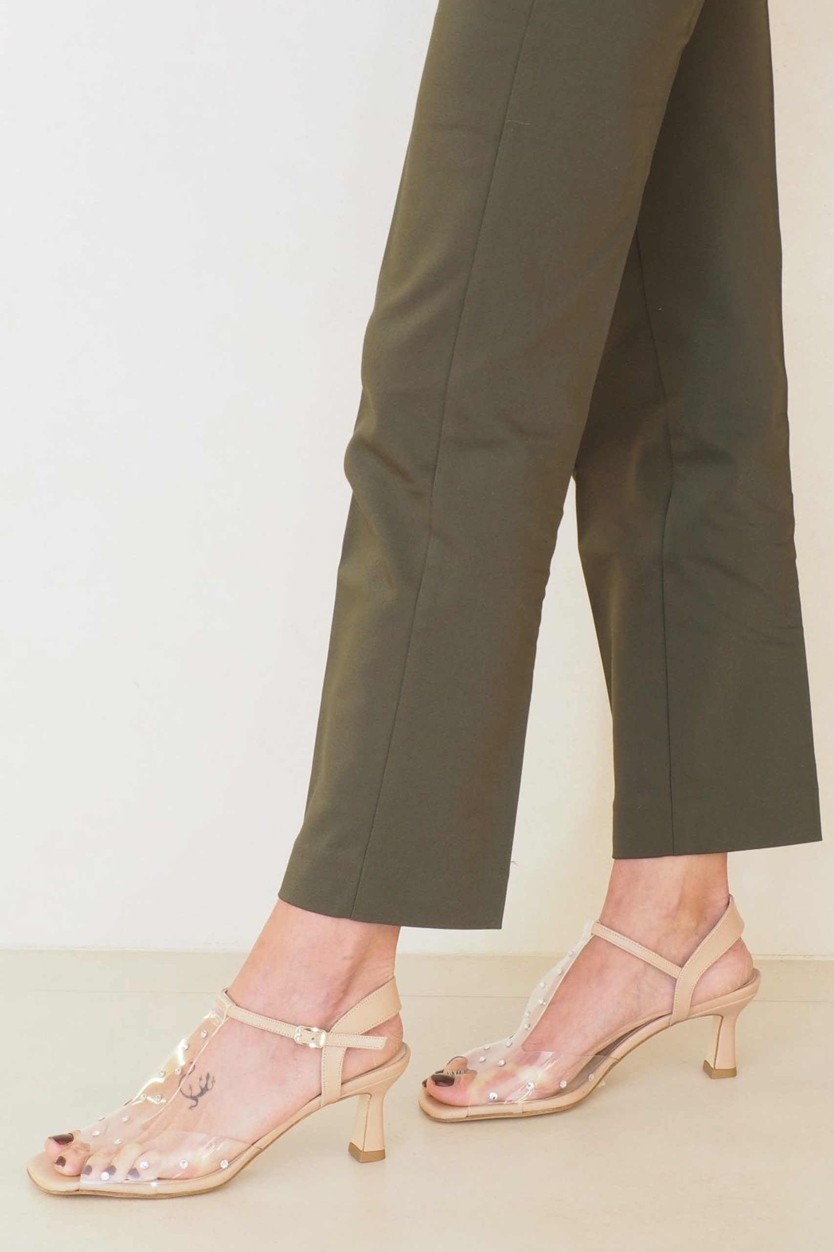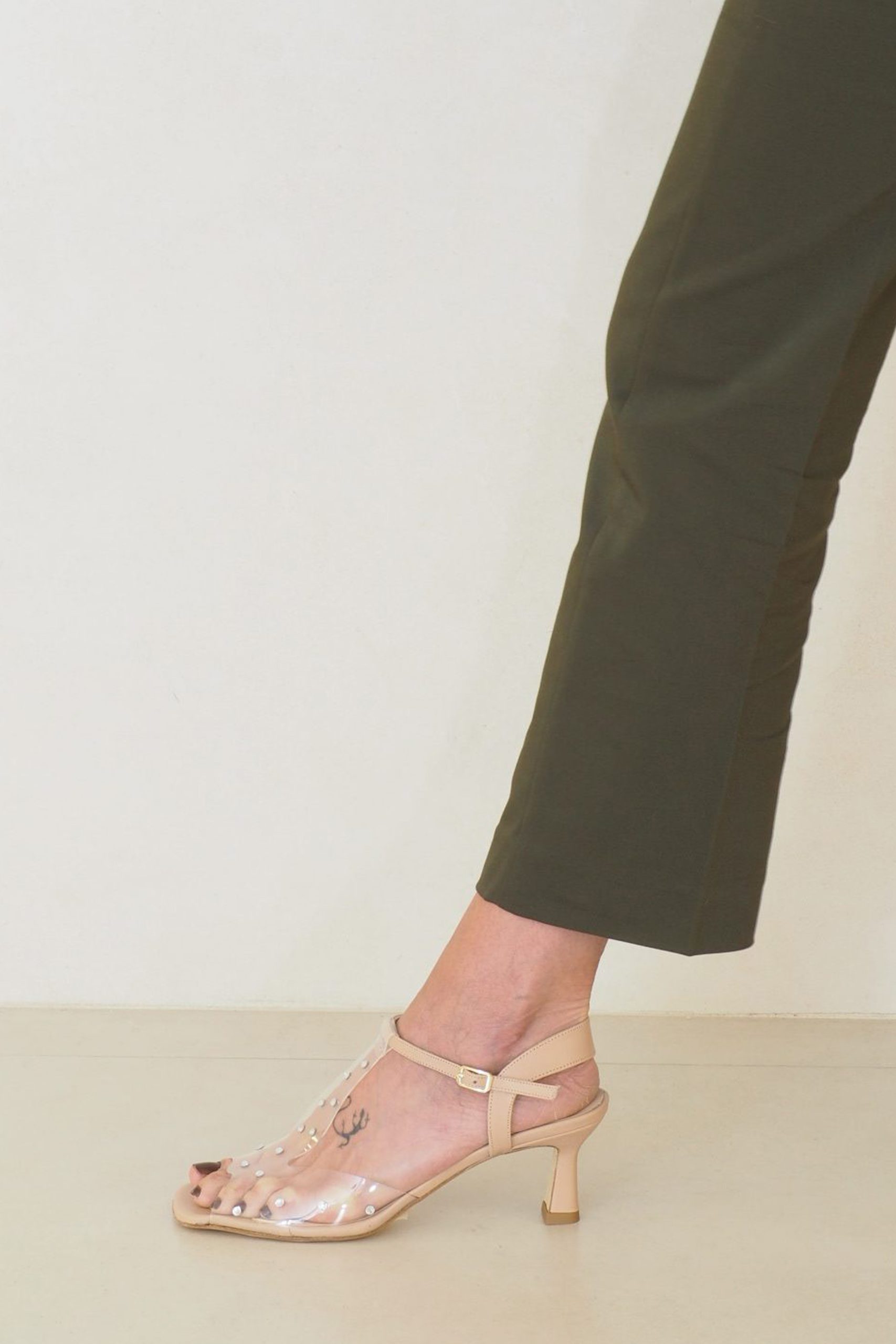 * Color : vinilo transparente con plantilla y tapa tacón en nude. Detalles strass plata
