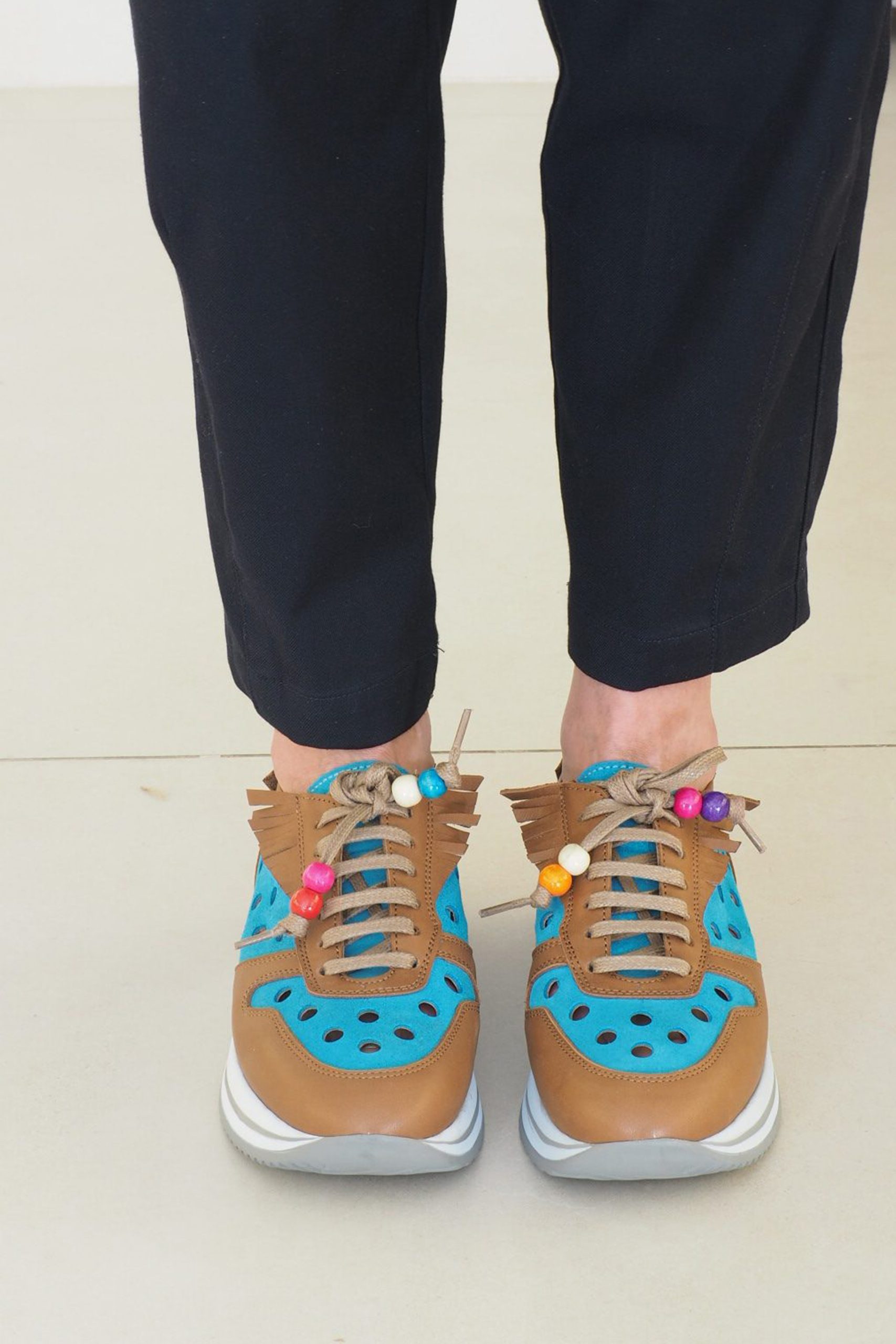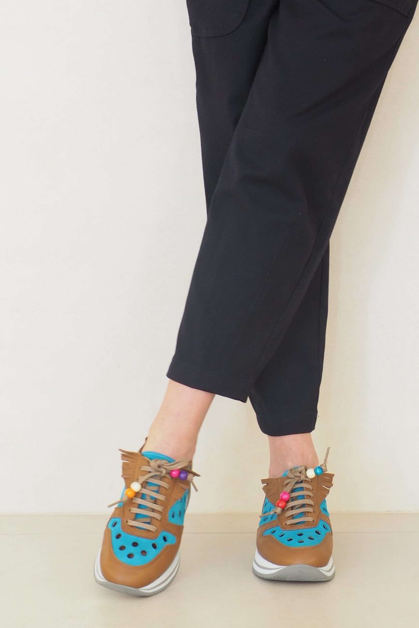Divertida y confortable sneaker en ante y piel  con detalles indi muy especiales. Te gustará por su diseño, pero te enamorará su calce y pisada. Con plantilla extraíble estas bambas con suela de goma y tacos estilo New Balance la convierten en un artículo premium en calidad y anatomía para  tus pies.