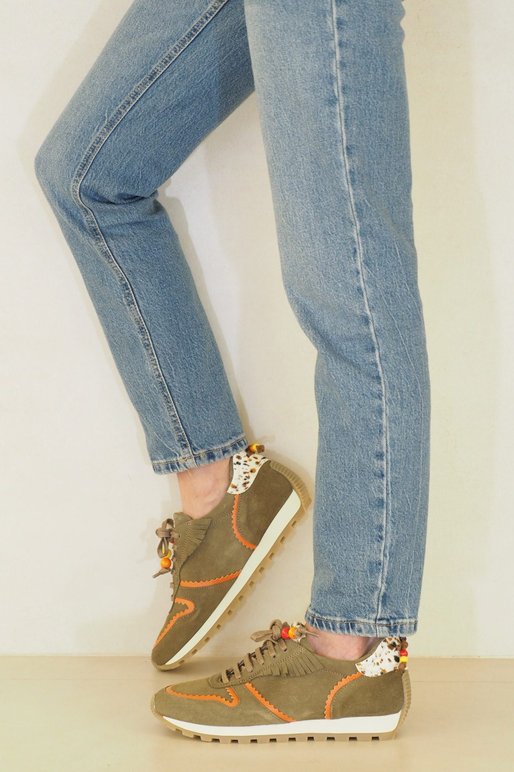 Divertida y confortable sneaker en ante y piel de vaca con detalles indi muy especiales. Te gustará por su diseño, pero te enamorará su calce y pisada. Con plantilla extraíble estas bambas con suela de goma y tacos estilo New Balance la convierten en un artículo premium en calidad y anatomía para tus pies. Elige el color que más te guste y a la calle. Otra cosa importante:PLANTILLA EXTRAIBLE