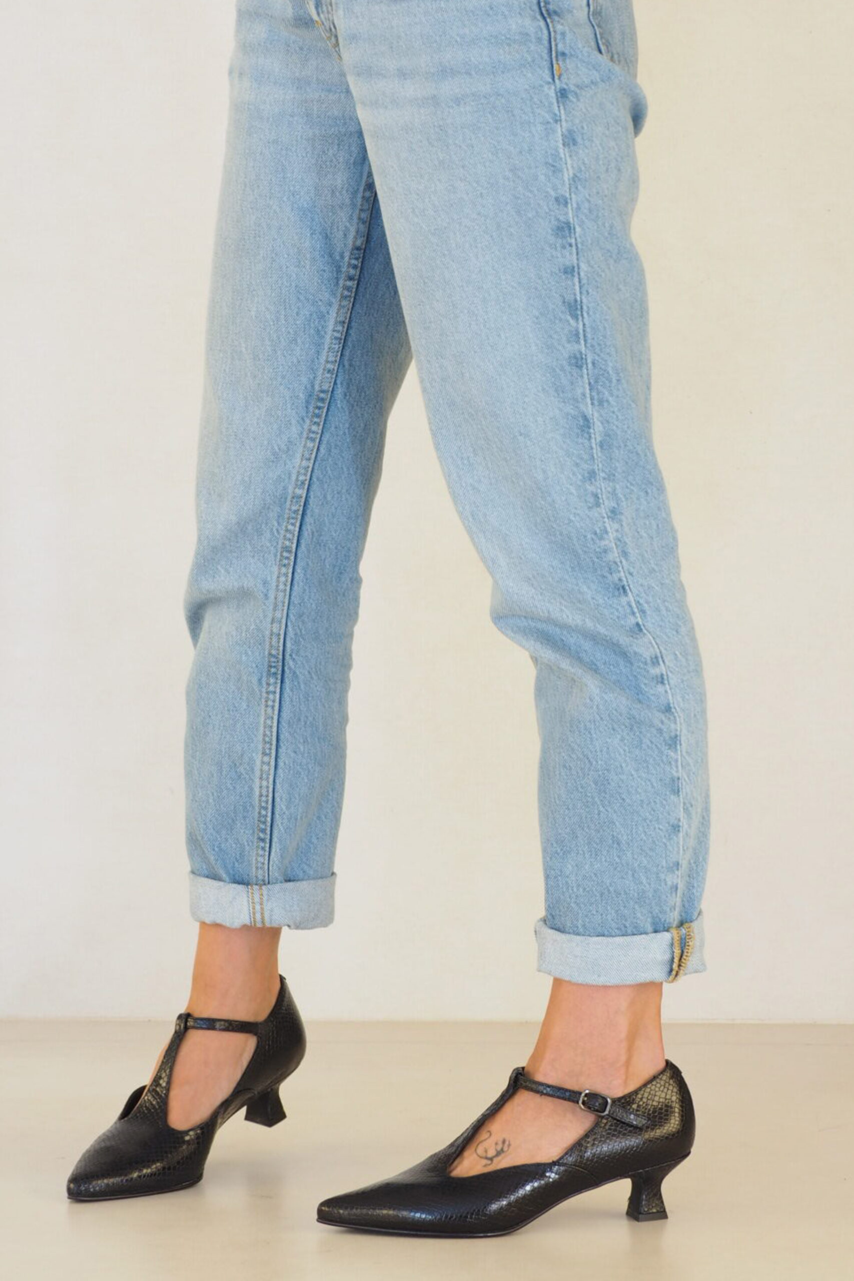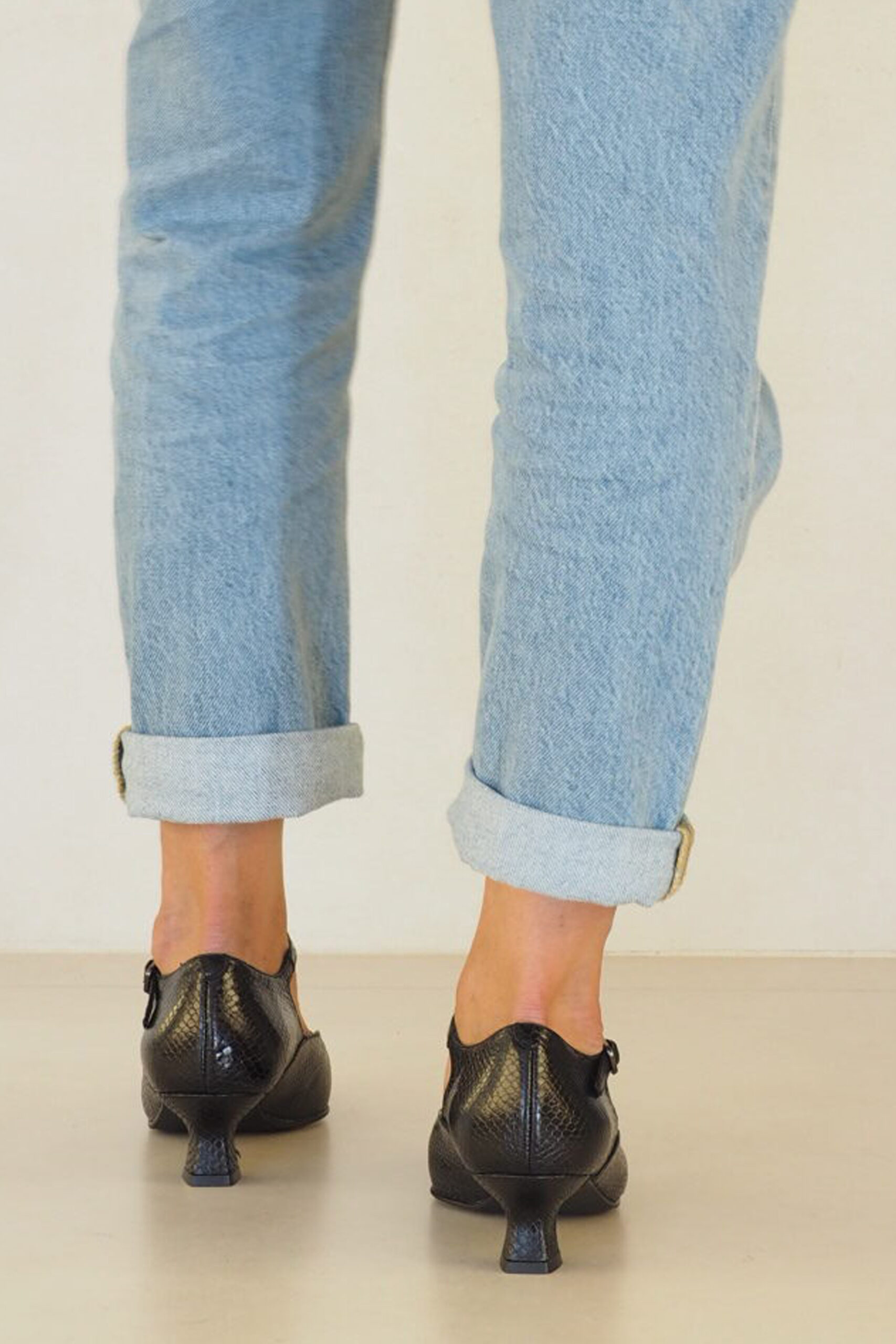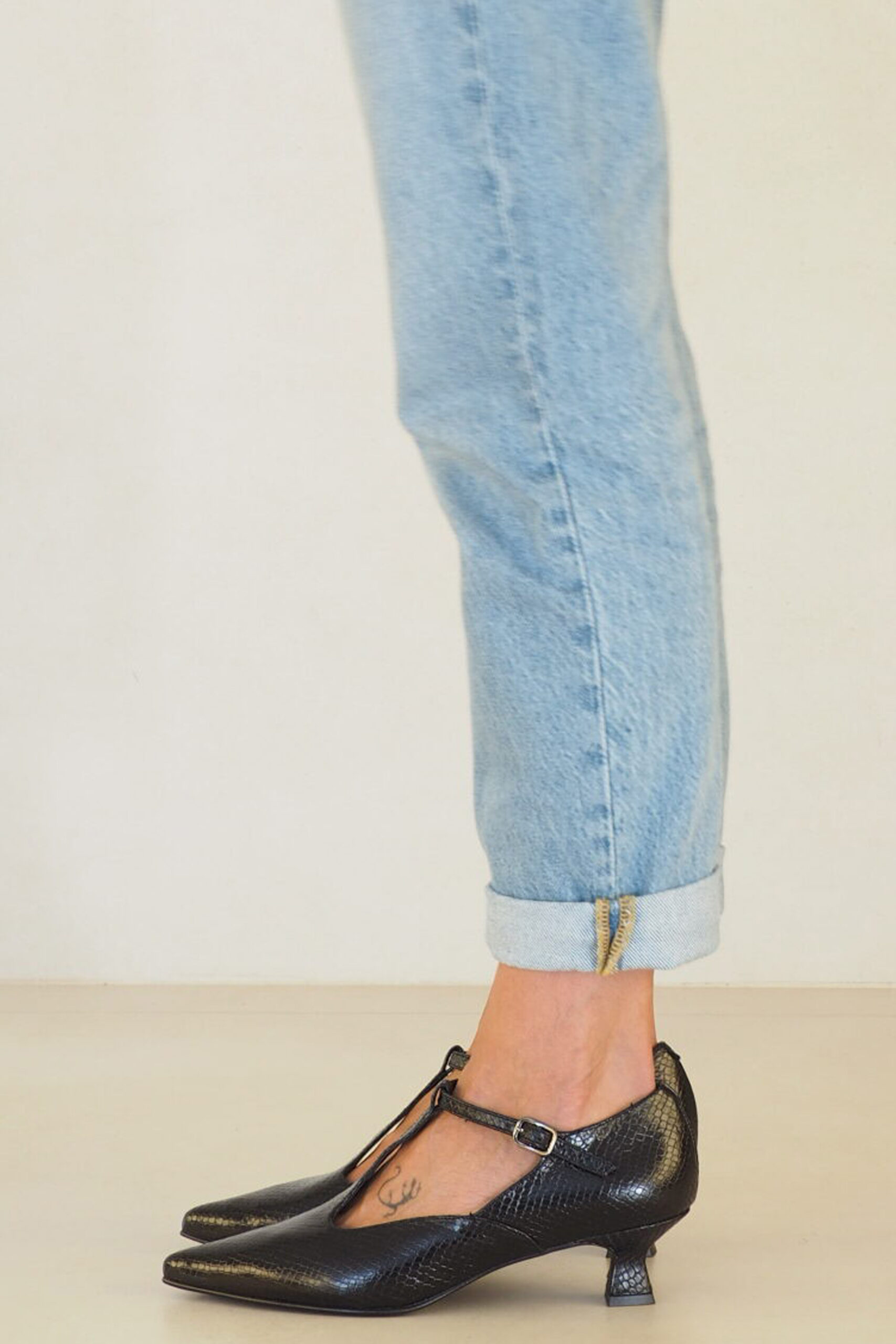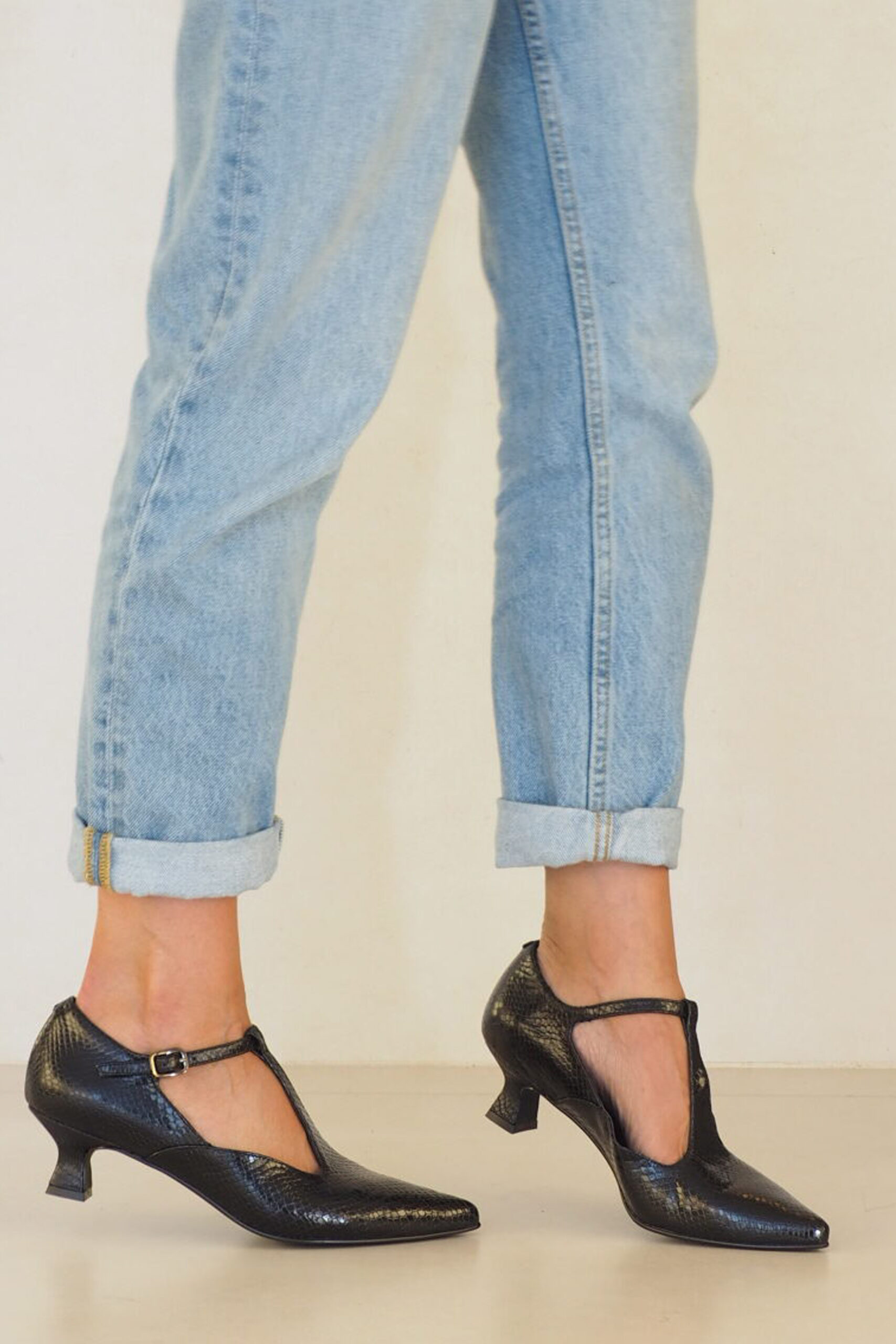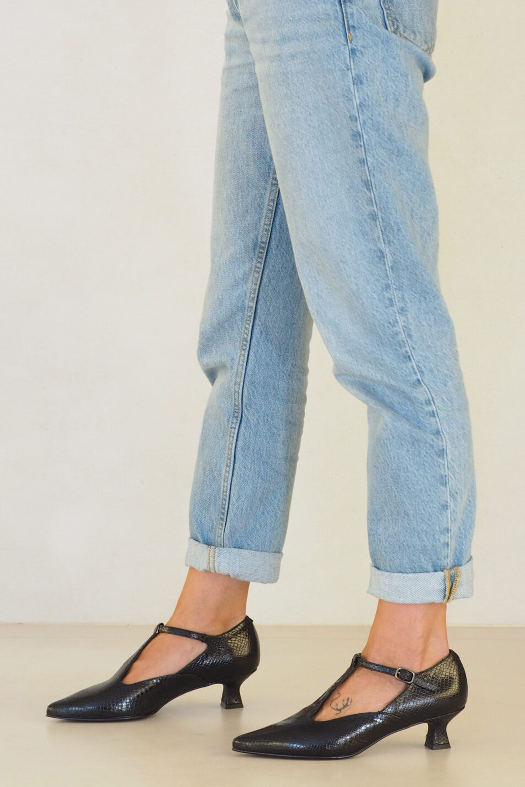 Para las que buscan un zapato básico, con puntera no muy pronunciada, con una tacón fino, pero casi inexistente (5 cm chupete, con base puente en los 3 cm) y con muy muy buen precio… está el zapato Zo. Calza super bien y su corte tanto en pala como pie es perfecto. Aquella que tengo juanete (estándar) o el pie un poco ancho… va a poder comprarse tranquila este artículo. Mira bien las fotos de la modelo para ver lo que te digo.